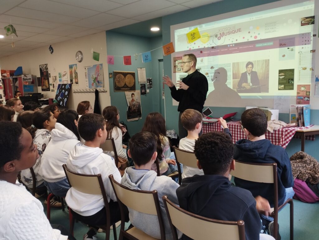 La matinée a débuté par une rencontre avec Vincent Courion, qui a présenté aux élèves l’association Kiosque à Musique et les différents projets musicaux proposés aux jeunes et aux aînés. Cette introduction a permis aux élèves de mieux comprendre l’importance de la musique comme vecteur de lien social et d’expression personnelle.