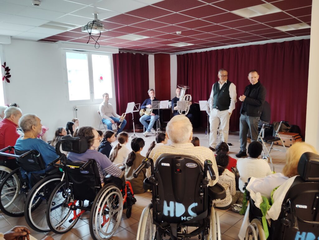 L’après-midi, les élèves ont rencontré des patients de l’hôpital. Plusieurs ont été touchés par les histoires de vie partagées, évoquant des souvenirs de proches hospitalisés ou en EHPAD. La musique a également joué un rôle central, créant un moment de partage et d’émotion pour les élèves comme pour les patients.